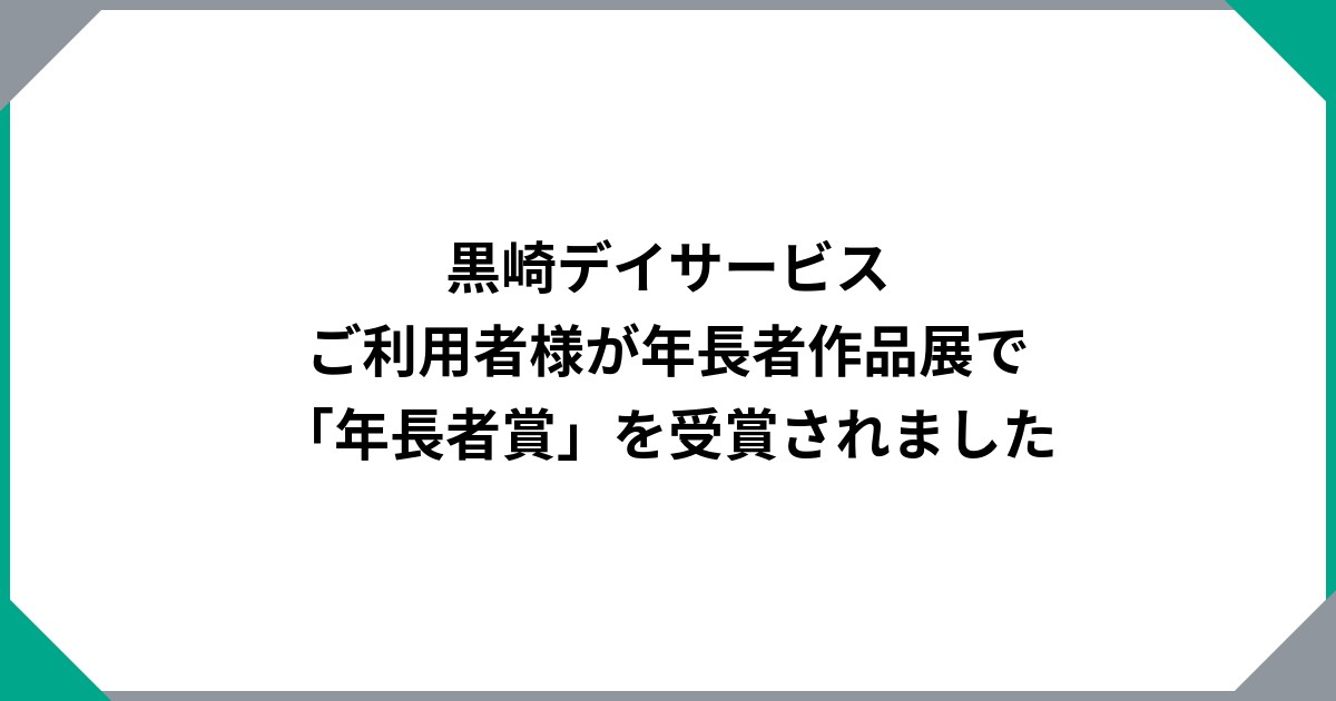 黒崎デイサービス ご利用者様が年長者作品展で「年長者賞」を受賞されました イベント情報