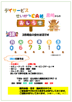 デイサービスせいかつCAN黒崎の3月の行事予定表と空き状況をお知らせいたします
