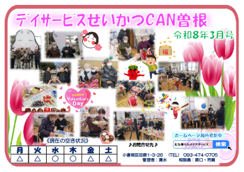 デイサービスせいかつCAN曽根の3月の行事予定表と空き状況をお知らせいたします