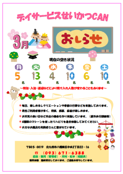 デイサービスせいかつCANの3月の行事予定表と空き状況をお知らせいたします